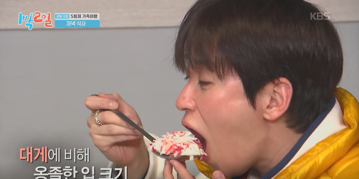 [1박2일] 쫀득한 구룡포 과메기 홀릭...딘딘, 한입 찬스로 ‘오동통한 게살’ 한입 가득