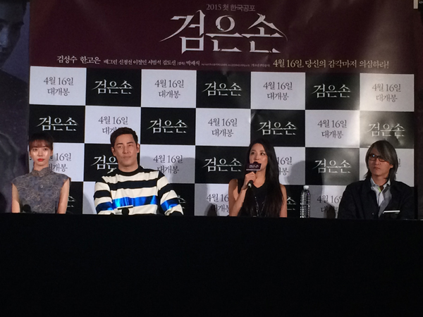 올해 첫 한국 공포영화 ‘검은손’이 지난 10일(금), CGV왕십리에서 주연배우 김성수, 한고은, 배그린과 박재식 감독이 참석한 가운데 언론시사회를 갖고 영화팬을 찾는다.