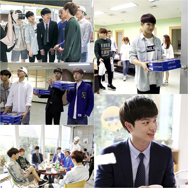 육성재는 말끔한 수트 차림으로 형들을 방문을 맞이했고 수줍은 표정을 지어보였다. 이후 가장 먹고 싶은 간식으로는 동생라인이 가져온 대형 요거트를 선택했다. 또 비투비 멤버들은 미리 준비한 피자를 스태프에게 "우리 태광이 잘 부탁드립니다"라는 인사를 하며 전달하기도.