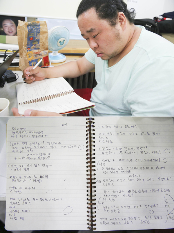 '니글니글' 멤버 이상훈과 송영길의 개그노트에는 '자뻑' 아이템들이 빼곡히 담겨있다.