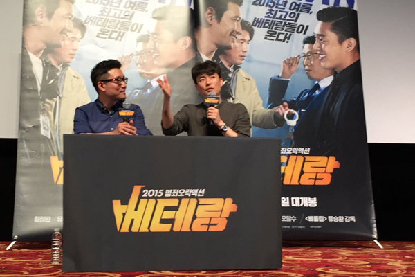 류승완 감독의 호쾌한 액션물 ‘베테랑’이 어제 개봉되었다. 개봉 첫날 관객 수는 41만 4천명. ‘암살’과 ‘미션 임파서블:로그네이션’을 제치고 흥행 톱을 기록했다. 류승완 감독은 개봉일에 특별한 홍보활동에 나섰다. 어제(5일), 서울 광진구 롯데시네마 건대입구에서는 류승완 감독이 참석한 가운데 ‘프리미어 톡&톡’ 행사가 열린 것. 상영관을 가득 메운 관객들은 영화가 상영되는 동안 유쾌한 웃음과 박수, 감탄을 쏟아내며 영화 ‘베테랑’의 재미에 흠뻑 빠져들었다. 영화가 끝난 뒤 영화주간지 ‘씨네21’의 주성철 편집장의 사회로 본격적인 토크쇼가 진행되었다. 충무로의 달변가인 류승완 감독은 영화촬영 현장에 대한 비하인드 스토리는 물론 영화에 대한 심도 깊은 이야기를 풀어놓았다.
