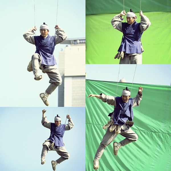 ‘장사의 神-객주 2015’ 장혁이 2시간 동안 10m ‘고공 와이어 액션’에 매달렸다.