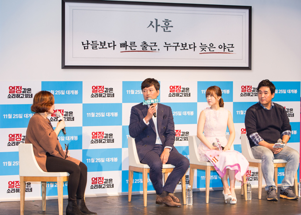 ‘스펙전쟁’을 거쳐 바늘구멍을 통과한 수습사원들이 ‘열정의 노예’가 되는 서글픈 현실을 적나라하게 '재밌게' 그린 정기훈 감독의 ‘열정같은소리하고있네’는 내달 25일 개봉된다. 개봉을 한달이나 앞두고 ‘열정’을 앞세워 제작보고회를 연 것이다. “열정, 열정, 열정!”