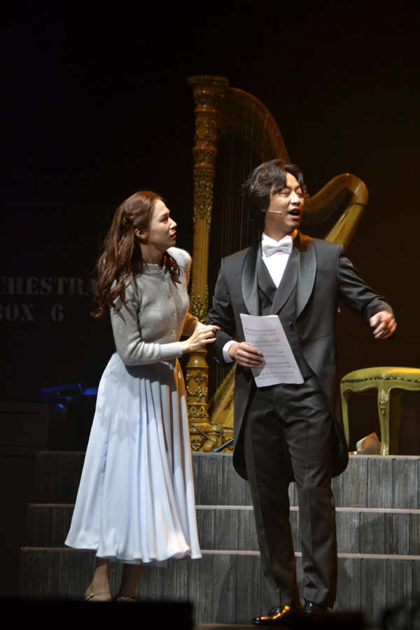 지난 16일(수) 오후, 개막을 앞두고 취재진을 대상으로 한 프레스콜 행사가 열렸다. 지휘자(컨덕터)에 황정민과 오만석을 필두로 대부분의 배역이 더블 캐스팅되었다. 오케스트라 단원은 서범석/김태문(오보에), 박혜나/최우리(바이올린), 윤공주/린아(하프), 최재웅/김재범(트럼펫) 정상훈/황만익(색소폰), 송영창/문성혁(피아노), 김원해/김호(비올라), 백주희/김현진(첼로), 육현욱/이승원(기타), 남문철/심재현(드럼), 이상준(바순), 정욱진/박종찬(퍼커션) 등이다. 이야기를 풀어나가는데 있어 특별한 주인공은 따로 없다. 모두가 자신의 사연을 갖고 악기를 연주하고 수다를 떤다.