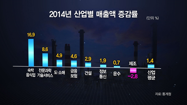 1인당 GRDP(지역 내 총 소득) 1위, 수출 규모 1위, 국내 대표 제조업체 공장이 밀집해있어 불황을 몰랐던 울산 경제가 추락하고 있다. 글로벌 경기 둔화의 악재 속에 수출 부진으로 직격탄을 맞고 있는 것이다. 비단 울산의 이야기만은 아니다. 지난 해, 한국 경제는 위기라는 말이 끊이지 않았다. 세계 1위 자리를 고수했던 조선 해양 산업은 지난 해 7조원의 적자를 기록했고, 수출은 7%나 감소했다. 한국 경제의 기둥이라 불렸던 제조업이 흔들리고 있는 것이다.