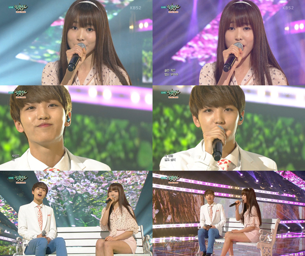 오늘(25일) 방송된 KBS 2TV '뮤직뱅크'에서 여자친구 유주와 업텐션 선율이 '보일 듯 말 듯'을 부르며 속마음을 고백했다.