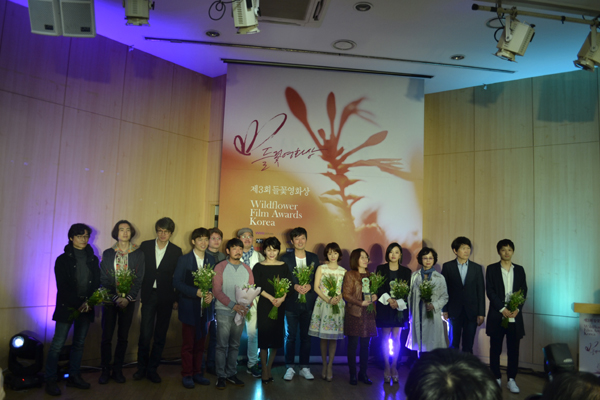 어제(7일) 저녁, 서울 중구 예장동 ‘남산 문학의 집’에는 한국영화를 너무나 아끼는 사람들이 모였다. ‘제3회 들꽃영화상 시상식’을 위해서. 오후 7시부터 포토월 행사가 열렸다. 지난 한 해 독립영화계에서 대활약을 펼쳤던 영화인들이 취재진을 위해 활짝 웃으며 포즈를 취했다.