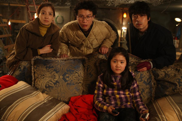 2012년에 만든 이 영화에서 삼촌 역의 송새벽이나 뉴스앵커 류승수, 이영은, 그리고 기상캐스트로 코믹 연기하는 고준희보다 더 반가운 얼굴이 있다. 민서의 아버지로 나오는 배우 이승준이다. 요즘 <태양의 후예>에서 ‘송닥’으로 출연 중이다. 7년 뒤 이들 가족이 세상 밖으로 나올 때, 어른이 된 민서는 배두나가 연기한다.