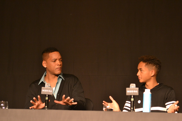 할리우드의 정상급 영화배우 윌 스미스가 새 영화 <애프터 어스>의 홍보를 위해 한국을 찾았다. 그제 아들 제이든 스미스(15)와 함께 서울에 도착한 윌 스미스는 어제 경복궁을 찾아 ‘한국도착 인증샷’을 올렸고 K팝 명가 YG 엔터테인먼트 사옥을 찾아 K팝 스타들과 즐거운 밤을 보냈다. 오늘 오전에는 서울 여의도의 콘래드호텔에서 공식 기자회견을 갖고 영화 홍보에 나섰다.