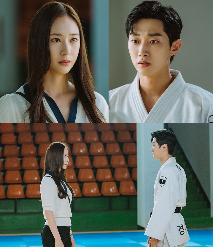 6일(오늘) 공개된 스틸에는 유도장 한가운데에서 애틋하게 시선을 교환하는 두 사람의 모습이 담겼다. 서로에게 푹 빠진 듯 눈을 떼지 못하는 이들은 두근거리는 설렘을 자아낸다. 또한 경찰 제복이 아닌 유도복을 입은 강선호와, 사복 차림의 오강희는 풋풋하고 청량한 청춘 에너지를 발산하고 있다.