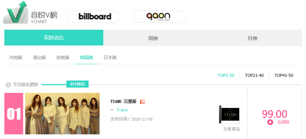 또, 중국최대 음악사이트인 인위에타이에서는 공개된 직후부터 상위권 순위를 기록하며 인위에타이 한국차트 1위를 기록했다.