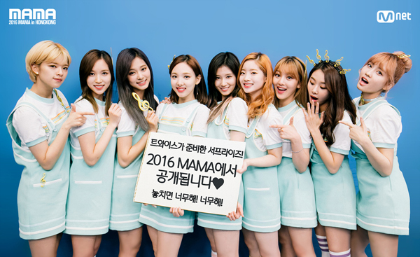 트와이스는 공식SNS를 통해“트와이스가 준비한 서프라이즈! ‘2016 MAMA에서 공개됩니다♥ 놓치면 너무해! 너무해!”라는 문구가 눈길을 끈다. 특히 환하게 웃는 트와이스의 생기발랄한 모습과 채영과 모모의 깜짝 놀라는 듯한 표정이 트와이스가 ‘2016 MAMA’에서 선보일 무대를 더욱 기대하게 만든다.