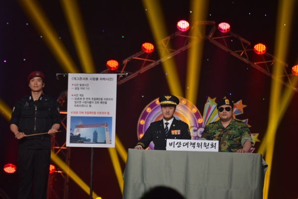 이날 오랜만에 소집된 '비상대책위원회'에서는 깜짝 장면이 연출되었다. 항상 '안 돼~"를 부르짖는 경찰총수 김원효와 '고뤠~?"를 남발하며 무장진압을 주장하는 김준현의 탁상공론 회의석상에 갑자기 '대통령'이 입장했다.