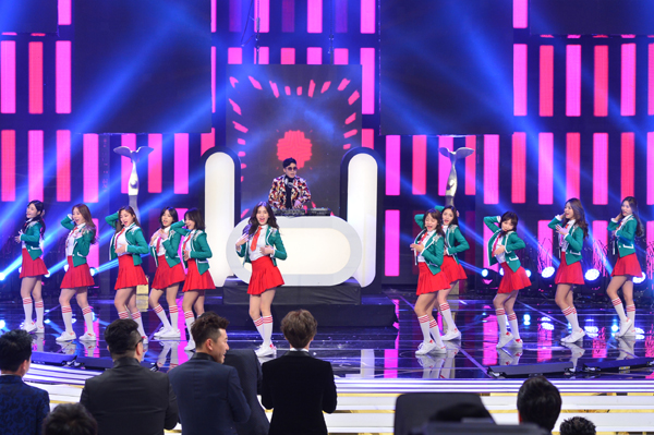 24일 여의도 KBS신관 공개홀에서 열린 ‘2016년 KBS 연예대상' 1부 마지막 축하공연으로 허경환의 디제잉과 함께 걸그룹 I.O.I(아이오아이)의 ’픽미‘ 콜라보레이션 무대가 펼쳐졌다.