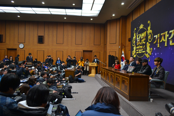 오늘 오전 서울 여의도 KBS신관 국제회의실에서는 강호동이 진행하는 새 예능프로그램 '달빛프린스'의 기자간담회가 열렸다. 기자간담회에는 강호동, 탁재훈, 정재형, 용감한 형제, 최강창민 등 다섯 명의 진행자와 연출을 맡은 이예지 피디가 참석하여 새 프로그램에 대한 각오를 밝혔다.