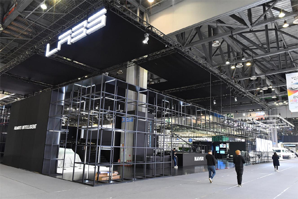 네이버랩스는 이번 서울모터쇼에서, 도로와 구조물로 이뤄진 모형 전시공간을 마련하고, 3차원 실내 정밀지도 제작 로봇인 ‘M1’이 자율주행으로 해당 공간을 이동하며 3D 정밀지도를 만드는 과정을 시연했다. (TV특종 박재환)