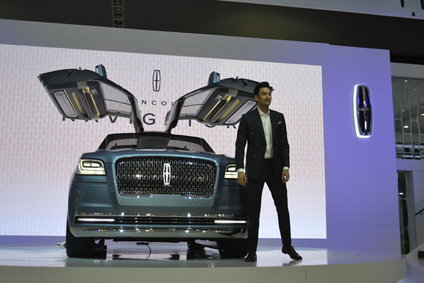 데이비드 맥기니스는 30일 경기도 고양시 킨텍스 전시관에서 열린 ‘2017서울모터쇼’ 프레스데이에 링컨코리아 대형 SUV 내비게이터 콘셉트(Lincoln Navigator Concept)카 공개 행사에 참석하여 취재진의 플래시 세례를 받았다.