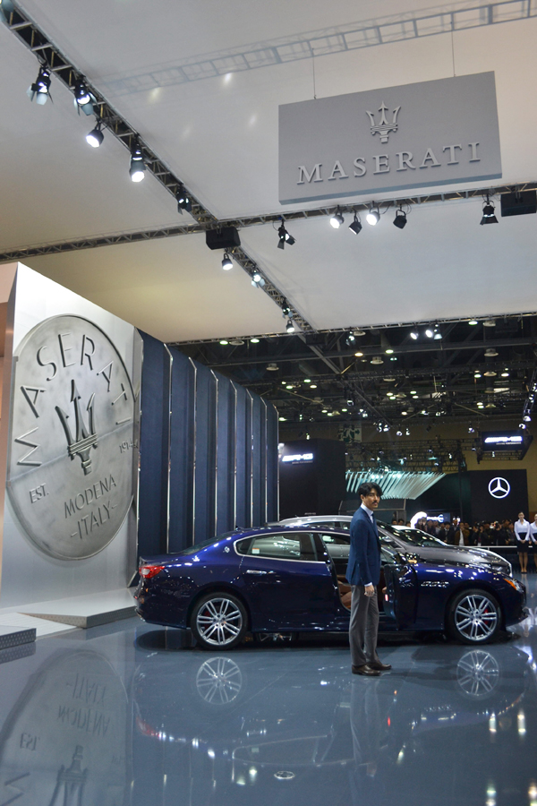 마세라티는 이번 서울모터쇼에서 세계적인 패션 명품 브랜드 에르메네질도 제냐(Ermenagildo Zegna)와의 협업을 통해 제작한 제냐 인테리어 차량인 ‘기블리 디젤’, ‘르반떼 S’, ‘더 뉴 콰트로포르테 S Q4 그란루소’ 등을 출품했다. 전시회장을 찾으면 tvN 드라마 ‘도깨비’에서 실제로 등장했던 르반떼 차량 전시하는 등 ‘이탈리안 하이퍼포먼스 럭셔리카 브랜드’ 마세라티의 품격을 느낄 수 있다.