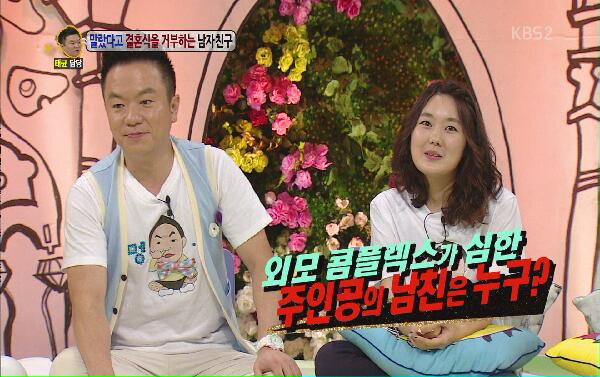 이어 예지 씨의 말에 의하면 남자친구는 사람들이 자신의 몸을 보고 비웃는다고 생각해 사람이 많은 곳은 가지도 않으며 한 여름에도 내복을 입는 등의 행동을 한다는 것. 특히 예지 씨를 속상하게 하는 것은 5년째 사귀고 있는 이 남자친구가 마른 몸때문에 결혼식도 하지 않고 혼인신고만 하자는 말에 상처를 받은 속내를 털어놨다.