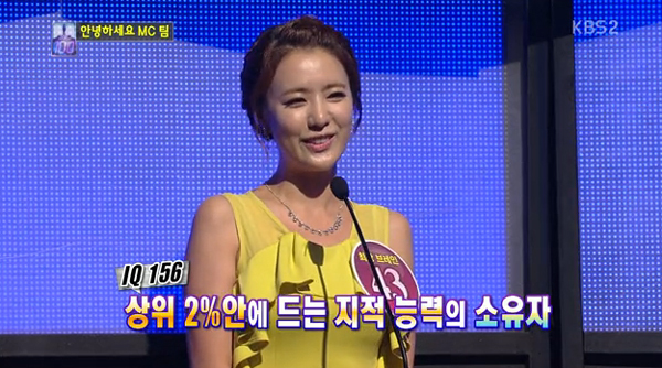 이 날 방송에서 앞서 IQ 156의 멘사회원으로 지성과 미모를 겸비한 재원으로 화제가 된 바 있는 정지원 아나운서는 "남자분들이 (아나운서에게) 다가오기 어려워한다."고 말했다.