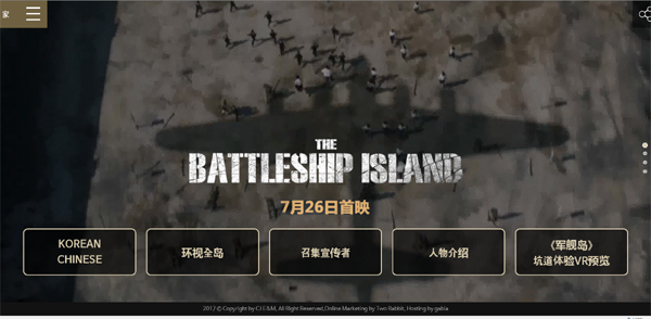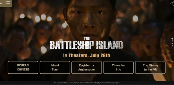 7월 26일 개봉되는 영화 <군함도>가 한국영화로서는 특이하게도 한글홈페이지와 함께 영어, 중국어 영화홍보사이트를 개설했다.