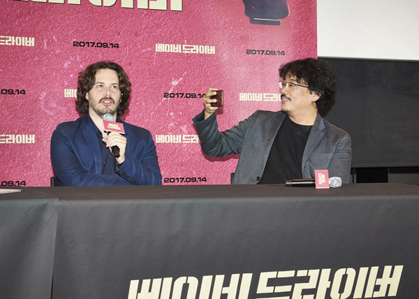 에드가 라이트 감독은 “한국 방문은 이번이 처음이라 굉장히 많은 기대가 된다. 또 한국 영화를 굉장히 좋아하는 팬이기 때문에 굉장히 의미 있게 생각한다”라며 한국 영화에 대한 애정을 드러냈다. 또한 “박찬욱 감독과 봉준호 감독의 팬이다. LA에서 열린 박찬욱 감독의 영화 <아가씨> 시사회에 직접 가서 영화도 보고 박찬욱 감독을 만나기도 했다. 봉준호 감독과는 <괴물> 이후부터 10여 년간 만남을 이어오고 있다. 오늘 밤에도 함께 불금을 보내며 좋은 이야기를 많이 나누기로 해서 기대가 크다”라며 박찬욱 감독과 봉준호 감독과의 남다른 친분을 밝히기도 했다.