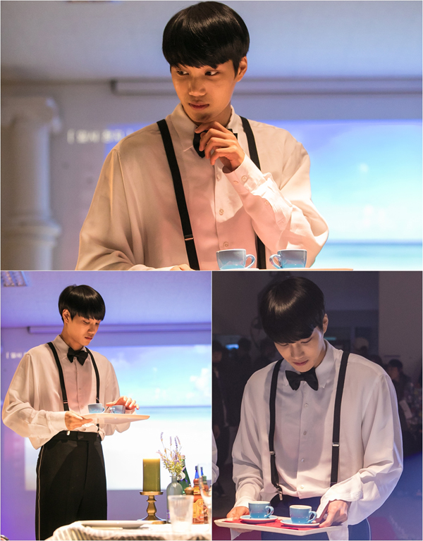 공개된 사진 속 카이는 흰 와이셔츠에 나비넥타이를 맨 예복차림으로 조심스럽게 차를 가져오고 있다. 작은 행동 하나에서도 실수하는 일이 없도록 조심스럽고 신중하게 움직이는 카이의 모습에서는 평소의 장난기 가득한 모습을 전혀 찾을 수 없다.