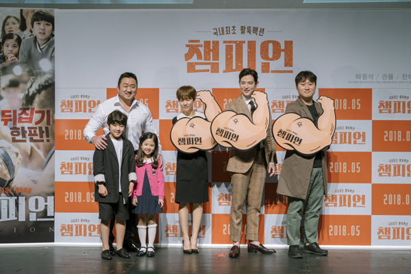 2일 오전 CGV압구정에서는 5월 개봉되는 국내최초 팔뚝액션 <챔피언>의 제작보고회가 열렸다. 방송인 박경림의 사회로 진행된 이날 행사에는 마동석, 권율, 한예리 배우와 연출을 맡은 김용완 감독이 참석했다.