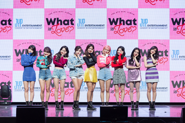 9일 오후, 서울 광진구 예스24 라이브홀에서 그룹 트와이스(나연, 정연, 모모, 사나, 지효, 미나, 다현, 채영, 쯔위)의 다섯 번째 미니앨범 ‘What is Love?(왓 이즈 러브?)’ 쇼 케이스가 열렸다.