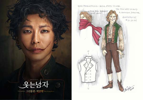 7월 개막을 앞두고 제작사는 ‘웃는 남자’의 캐릭터별 의상스케치와 컨셉 사진을 공개했다. 이번에 공개된 컨셉 사진은 ‘웃는 남자’의 실제 무대의상은 물론 디자이너의 의도와 가장 가깝게 스타일링을 하여 촬영한 것이다. 의상디자인을 맡은 그레고리 포플릭은 뮤지컬, 오페라, 발레 등 다양한 분야에서 20년 넘게 활동하여 색상에 대한 탁월한 감각을 인정받아 에미상 최고 의상 디자인 후보에 오른 세계적인 디자이너이다.