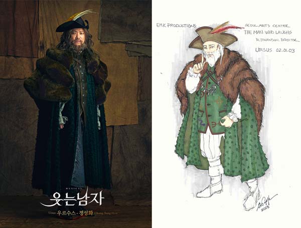 우르수스와 데아의 의상은 스타일적인 면과 컬러, 질감에서 그윈플렌과 통일감을 살려 디자인 함으로써 극중 가족같은 깊은 유대감이 형성되어 있는 이들의 관계를 표현했다. 특히 유랑극단을 이끄는 아버지 같은 존재이자 ‘곰’을 뜻하는 이름을 가진 우르수스는 우람한 풍채가 살아나도록 의상을 디자인했으며 라틴어로 ‘여신’을 뜻하는 데아는 순백의 마음을 가진 천사 같은 인물로 표현하기 위해 린넨 소재의 꽃 패턴이 새겨진 소박한 원피스를 만들어냈다.