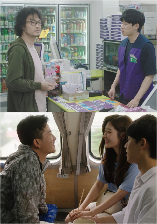 다른 사진 속 김준호는 설레는 첫 기차여행을 떠나는 김성철과 정채연의 맞은 편에 앉아 있는 모습이 담겼다. 김준호가 이들 커플의 사랑의 훼방꾼이 될지 조력자가 될 것인지 궁금한 가운데, 서로 보기만 해도 이미 웃음 NG가 터져버리고 마는 유쾌한 분위기가 드라마 속에서 어떤 코믹한 장면으로 탄생했을지 기대감을 키운다.