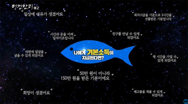 17일(금) 밤 10시, KBS1 <명견만리>에서는 경제평론가인 이원재 대표( LAB2050)가 출연하여 ‘기본소득’에 대해 모색해 보는 ‘물고기를 주세요! 기본소득’편 방송된다.