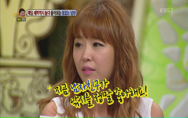 이 날 방송에서는 매일 새벽까지 놀다오는 철없는 남편 때문에 고민이라는 아내의 사연이 소개됐다. 아내의 말에 따르면 남편은 친구를 만나는 것을 좋아하는 것 뿐만이 아니라 밤낚시를 좋아해 집에 들어오지 않는다고 밝혔다.