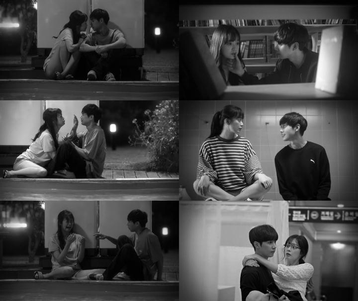 또한 도서관에 멍하니 앉아있는 전소민을 향해 다가가는 박성훈의 모습, 묘한 표정으로 눈을 맞추고 있는 두 사람의 모습은 흑백 사진이지만 실감나는 케미를 보여주며 작품에 대한 기대감을 높인다. 뿐만 아니라 또 다른 스틸컷에서는 전소민이 놀란 모습으로 박성훈에게 안겨있어 두 사람 사이에 어떤 일이 벌어진 것인지 호기심을 자극한다.