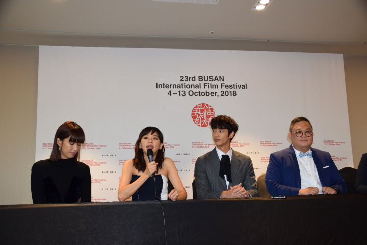 7일 오후, 부산 해운대 그랜드호텔에서는 제23회 부산국제영화제 오픈시네마 부문 초청작 '모어 댄 블루'(원제:比悲傷更悲傷的故事)의 린샤오치앤(林孝謙/임효겸) 감독과 배우 류이하오(劉以豪/류이호),천이한(陳意涵/진의함), 천팅니(陳庭妮/진정니)가 참석한 가운데 기자간담회가 열렸다.