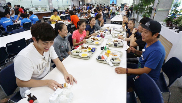 태릉선수촌 구내식당에서 식사를 하던 중 리듬체조 선수들과 자리를 함께 하게 된 예체능팀. 이에 이수근이 가만 있을 리 만무하다. 즉석에서 '예체능배 인기투표'가 벌어지게 된 가운데 선수들의 사랑의 작대기는 존박을 향하게 된다. 이에, 특유의 잇몸웃음을 선보이며 선수들에게 "소원을 들어주겠다."고 말한 존박은 그 어느 때보다 기쁜 마음을 감추지 못했다는 후문.