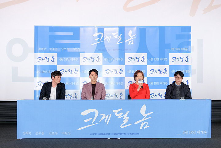 헛된 기대만 품고 살아온 끝에 사형수가 된 아들과 그런 아들을 살리기 위해 생애 처음 글을 배우는 까막눈 엄니의 애틋한 이야기를 담은 영화 <크게 될 놈>의 언론배급시사회에는 강지은 감독, 배우 김해숙, 손호준, 박원상이 함께 했다.