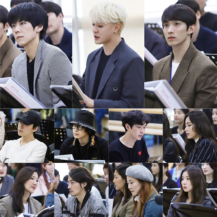 지난 15일, 스티븐 레인 연출을 비롯해 엄홍현 총괄 프로듀서, 원미솔 음악감독 등을 필두로 주요 스태프들과 카이, 김준수, 도겸(세븐틴), 엄기준, 이지훈, 박강현, 신영숙, 장은아 등 전 출연진이 연습실에서 상견례를 가지고, 본격적인 첫 연습을 시작했다.