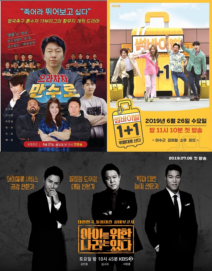 KBS는 올 하반기, ‘으라차차 만수로’, ‘썸바이벌 1+1’, ‘아이를 위한 나라는 있다’까지 3개의 신규 예능 프로그램 론칭을 앞두고 있다. KBS 이재우 예능센터장은 “(예시) 올 하반기 축구부터, 로맨스, 돌봄까지 신선하고 다양한 소재의 예능 프로그램들을 준비했다. 시청자분들께 건강한 웃음과 깊은 공감을 줄 수 있는 고품격 예능프로그램들이 될 것”이라며 신규 라인업에 대한 자신감을 드러냈다.