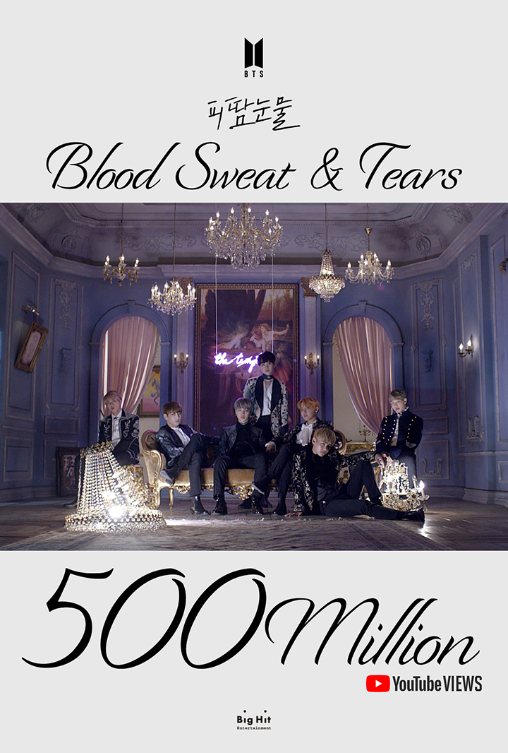 2016년 10월 발매한 방탄소년단 정규 2집 ‘윙스(WINGS)’의 타이틀곡 ‘피 땀 눈물’ 뮤직비디오는 25일 오전 조회수 5억 건을 넘었다.