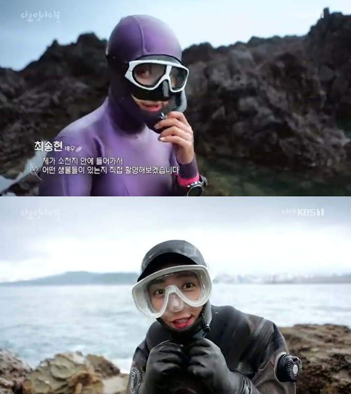 최송현은 보목 소천지를 찾아 잠수복을 착용하고 물 밑으로 들어갔다. 스노클링 명소로도 유명한 소천지에서 최송현은 직접 벵에돔 치어, 대강베도라치, 무늬망독 등을 촬영하며 다이버로서 뛰어난 실력을 선보였다.