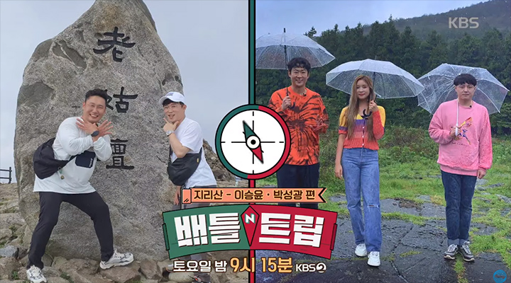 2일(토) 방송 예정인 KBS 2TV 원조 여행 설계 예능 ‘배틀트립’에는 ‘국내 산 여행’을 주제로 이승윤-박성광과 천명훈-노유민-우주소녀 다영이 여행 설계자로 전격 출격한다. 두 팀은 단풍이 물들기 직전인 지리산과 한라산을 배경으로, 지금 떠나면 형형색색 단풍으로 물든 가을 산을 만날 수 있는 여행 코스를 소개한다.