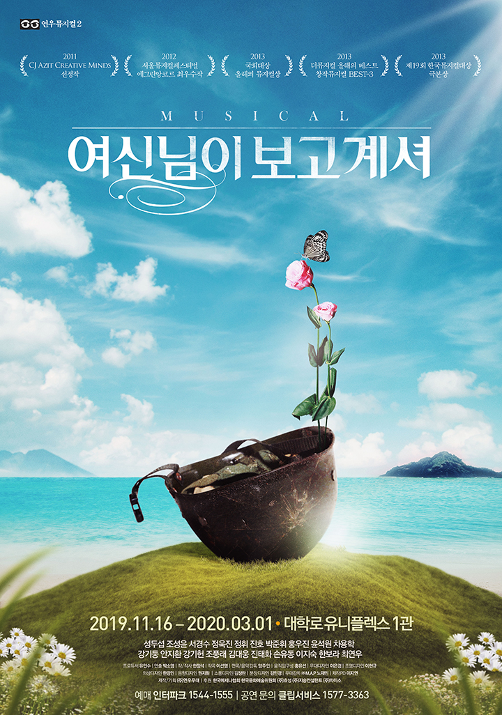 뮤지컬 <여신님이 보고 계셔>는 2011년 CJ Creative Minds 선정을 시작으로 2012 서울뮤지컬페스티벌 예그린앙코르 최우수선정작으로 당선, 2013년 1월 충무아트홀 소극장 블루에서 초연 당시 객석점유율 95%을 기록하는 등 그 해 창작뮤지컬 최고의 기대작으로 주목을 받았다.