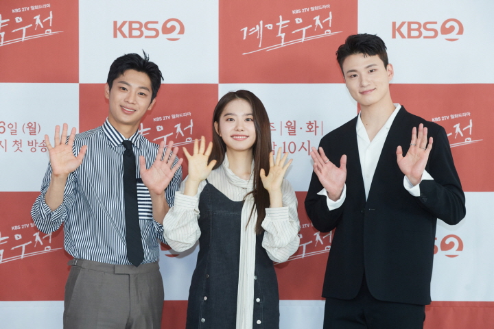 1일(월) 오후, KBS2 새 월화드라마 <계약우정>의 제작발표회가 열렸다. 코로나19 확산을 막기 위한 온라인 방식으로 진행된 이날 행사에는 이신영, 김소혜, 신승호 배우가 참석했다. ‘계약우정’은 존재감 없던 평범한 고등학생 찬홍(이신영)이 우연히 쓴 시 한 편 때문에 전설의 주먹이라 불리는 돈혁(신승호)과 ‘계약우정’을 맺게 되면서 벌어지는 좌충우돌 드라마이다. 드라마 제작진은 <계약우정>을 ‘시(詩)스터리’ 모험 드라마로 홍보하고 있다.