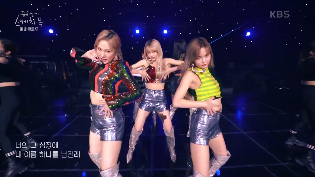 걸그룹으로선 이례적으로 데뷔 1년 반 만에 '유희열의 스케치북'에 첫 입성한 에버글로우는 완전체 무대를 선보이며 심야 시간대 시청자들의 시선을 사로잡았다. 특히 지난 9월 발표한 '라 디 다(LA DI DA)'는 물론 지난 2월 활동곡인 '던 던(DUN DUN)'까지 메들리로 선곡해 파워풀한 퍼포먼스에도 흔들림 없는 라이브 실력을 자랑했다.