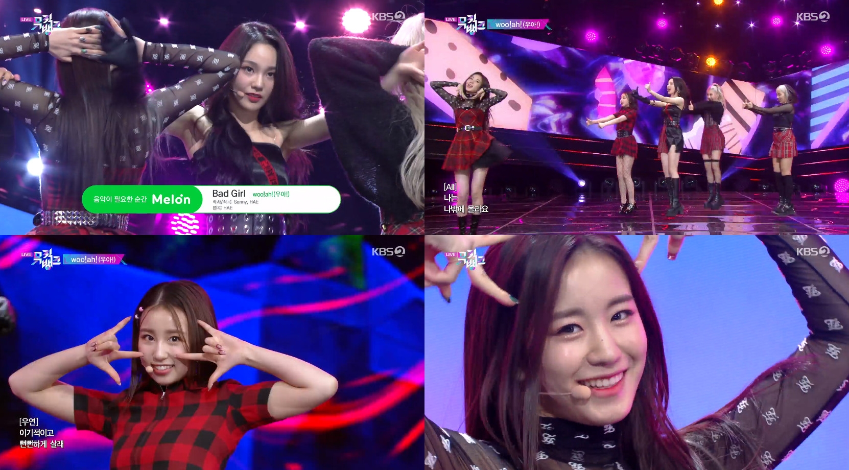 woo!ah!(우아!)는 4일 방송된 KBS2 '뮤직뱅크'에 출연해 두 번째 싱글 앨범 'QURIOUS' 타이틀곡 'BAD GIRL' 무대를 선보였다.