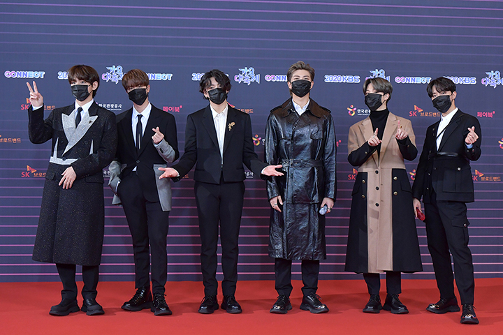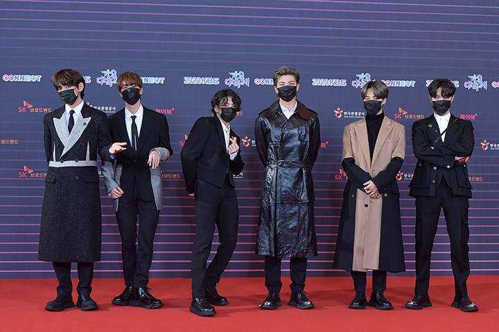 빌보드 차트의 정상에 오르며 전 세계적인 팬덤을 형성한 국민 아이돌 방탄소년단의 모습은 여유로웠다. 그들은 코로나 바이러스 확산 방지를 위해 마스크를 끼고 레드 카펫 위에 올랐다.