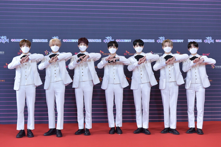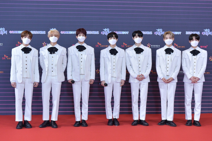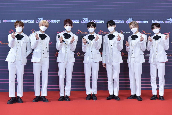18일 저녁, 서울 여의도 KBS에서 열린 ‘2020 KBS 가요대축제’ 레드카펫 행사에 참석한 엔하이픈(ENHYPEN )이 포즈를 취하고 있다.