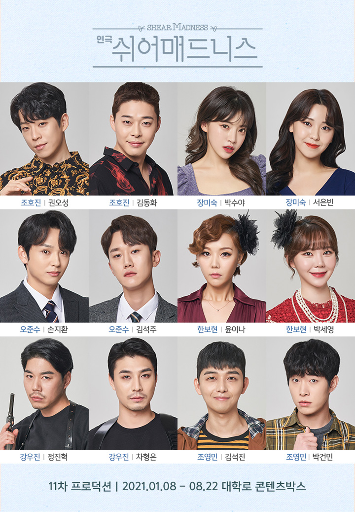 연극 <돌아서서 떠나라>, <언체인>, 뮤지컬 <해적>, <난설>, <미오 프라텔로> 등을 제작한 공연제작사 ㈜콘텐츠플래닝이 2015년부터 극을 새롭게 하여 공연해 온 연극 <쉬어매드니스>가 내년 상반기를 이끌 11차 프로덕션 캐스팅을 발표했다.